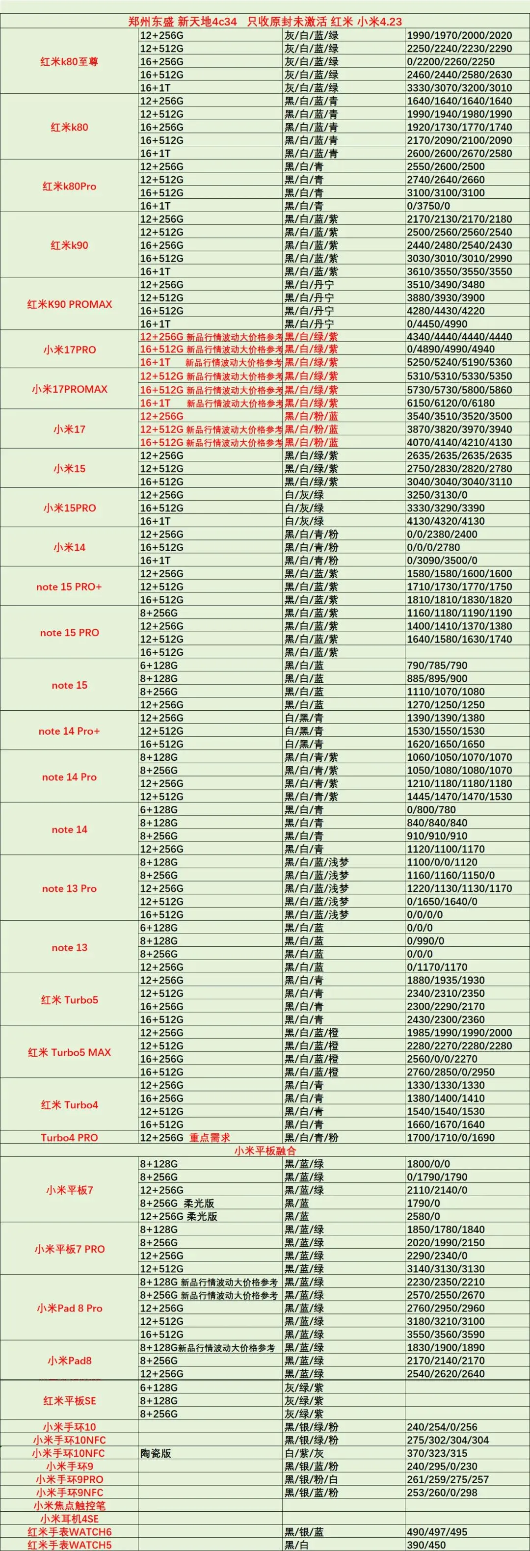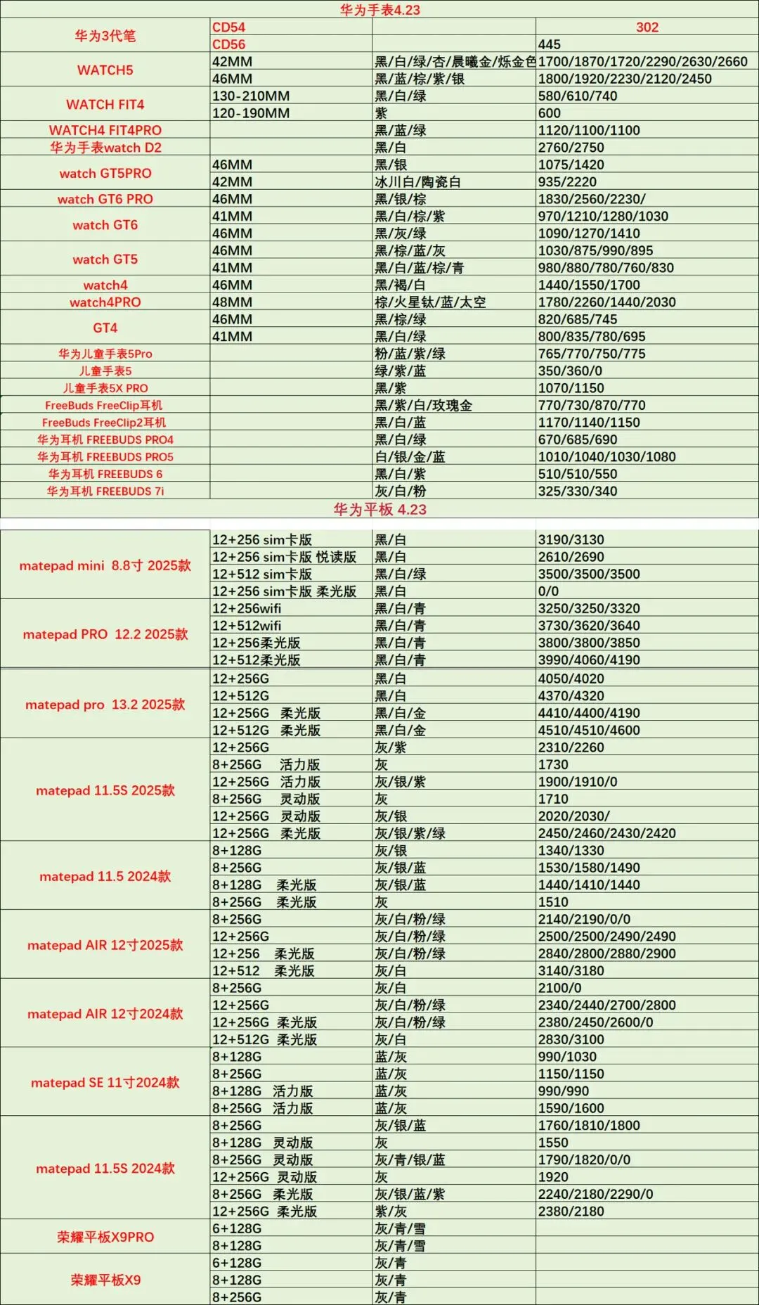 今日手机行情4月23日-最新手机价格表查询 荣耀 手机 平板 穿戴 生态链系列产品批发参考价