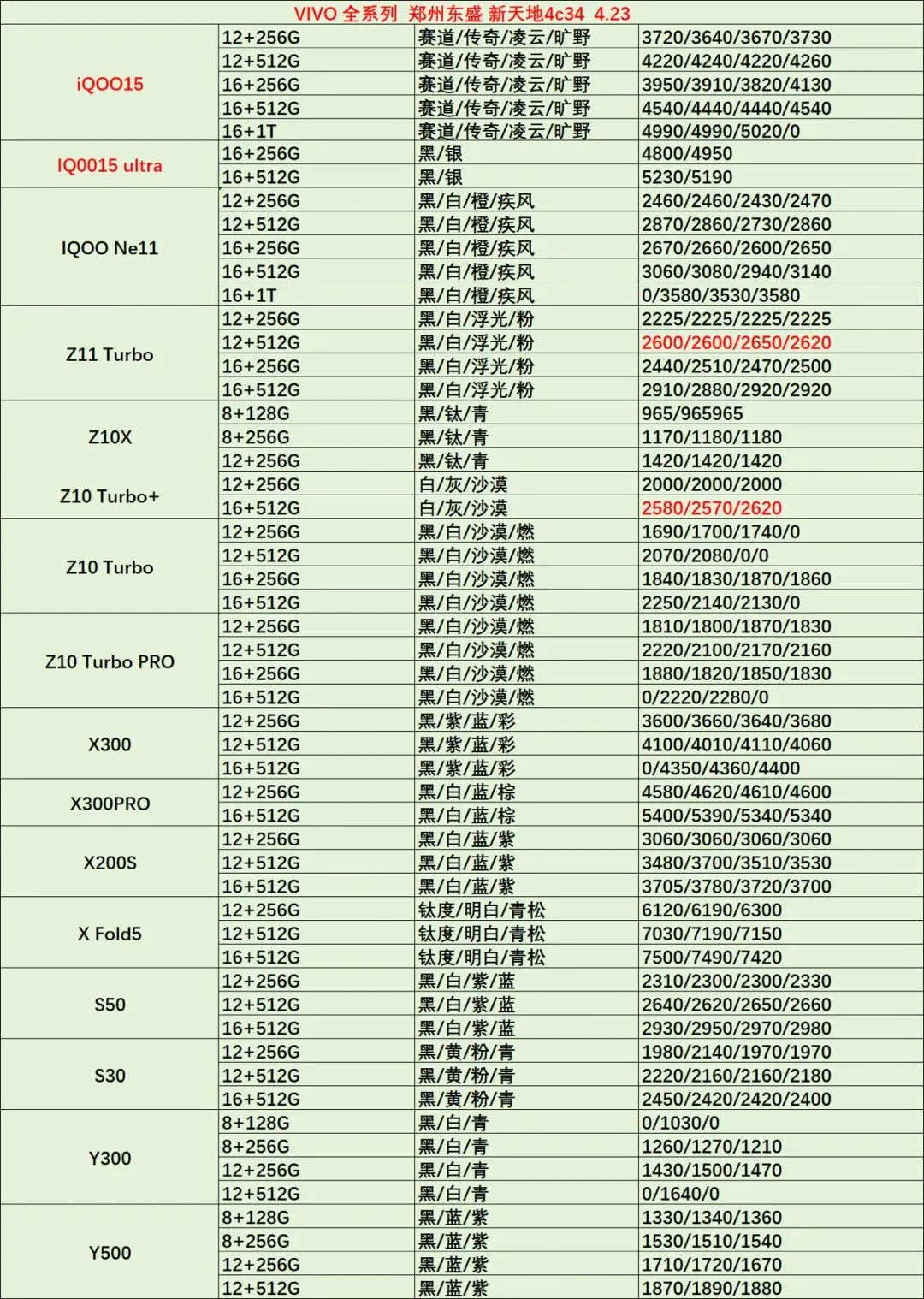 今日手机行情4月23日-最新手机价格表查询 vivo iqoo 手机 平板系列产品批发参考价