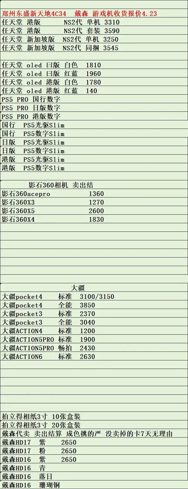 今日手机行情4月23日-最新手机价格表查询 大疆 影石 索尼 佳能 相机系列产品批发参考价