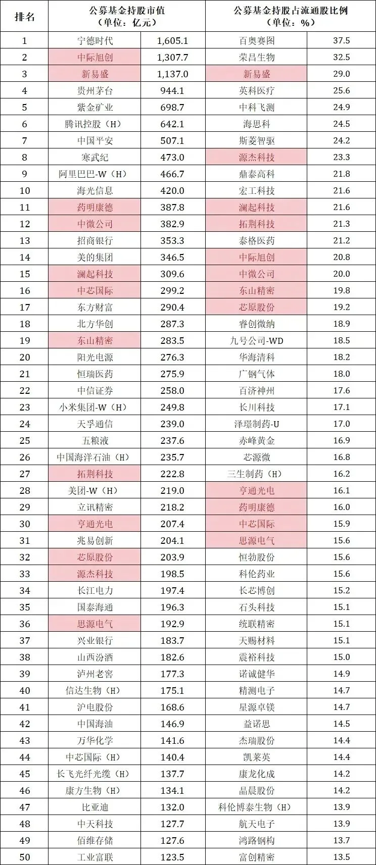 ❹.分享一季度公募重仓股名单(公开资料转):