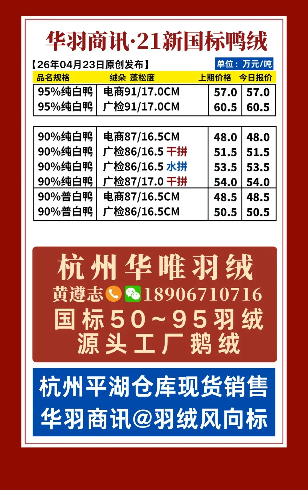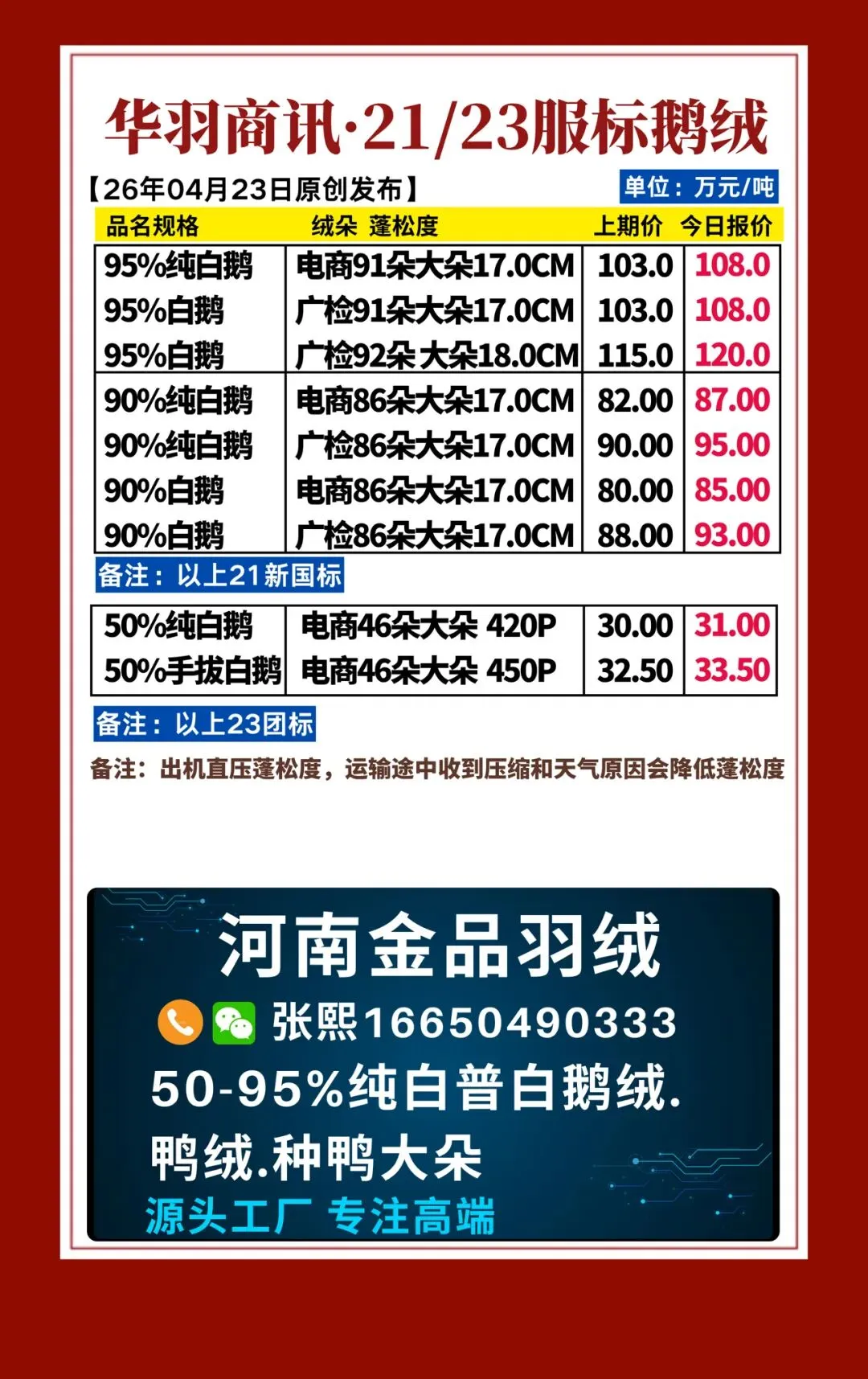 386期 | 华羽商讯·今日国标羽绒行情