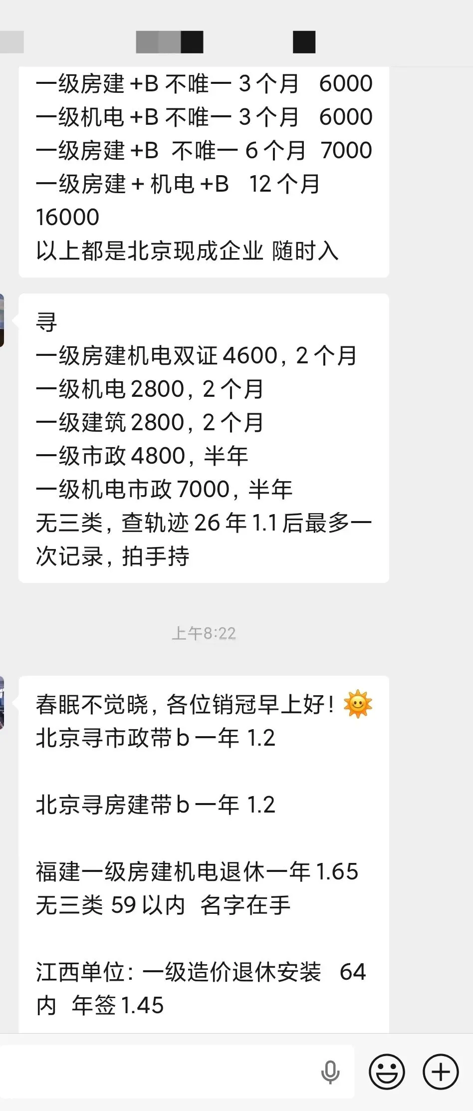 江西单位:一级造价退休安装 64 内 年签1.45