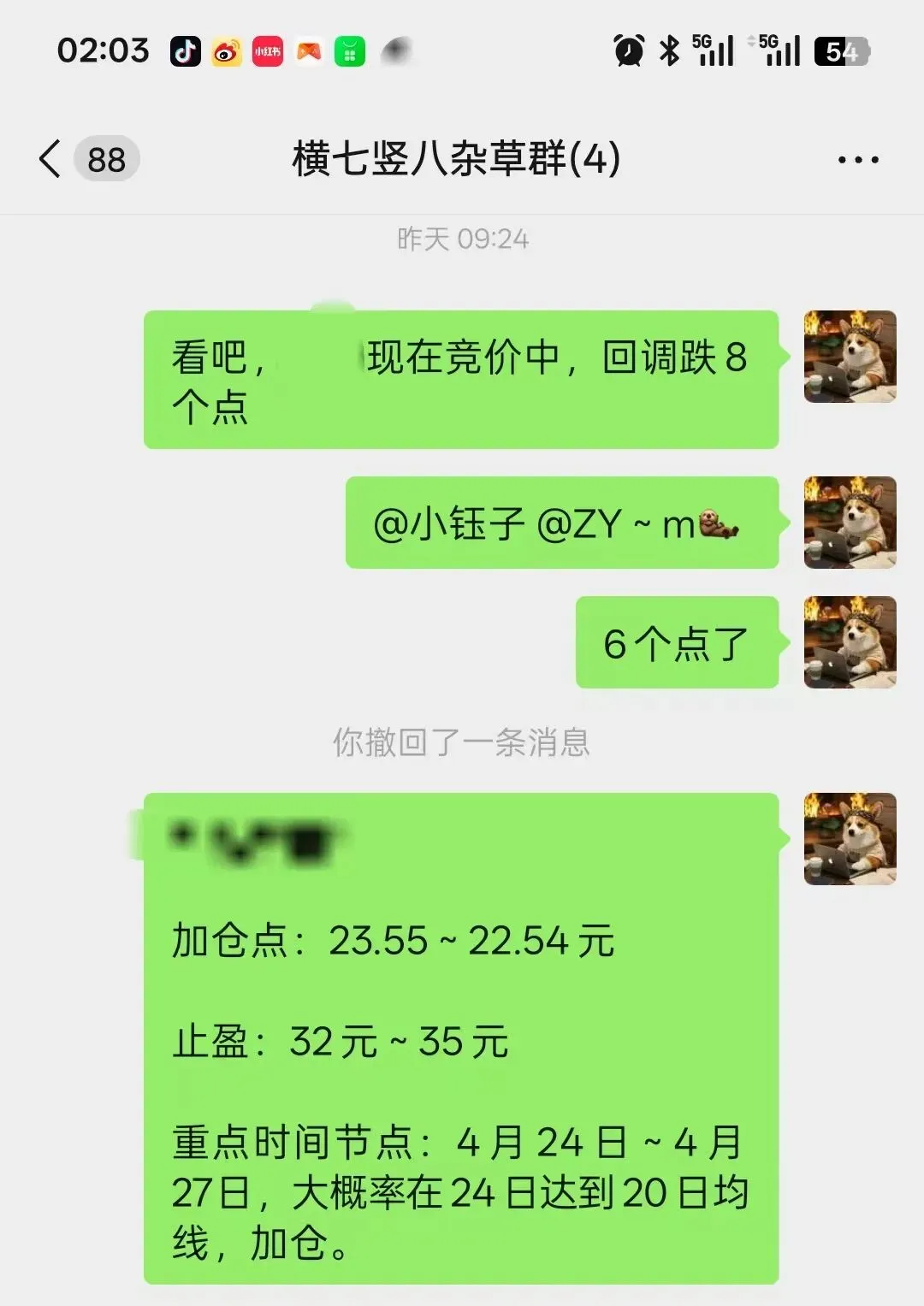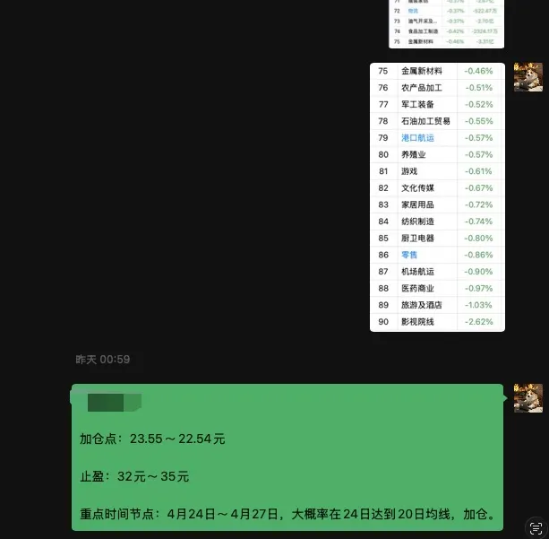 另外补充一点,从日线来看我会觉得20日均线可以作为一个加仓位,但要做好回落30日均线22.67元附近的准备,总之整体来讲我的观点还是比较偏向于:如果这周收阴线,那么4月27日后的一周大概率收阳线,5月1日跳空高开。