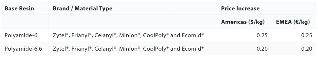2月1日,受能源和原料成本上涨等多种因素影响,塞拉尼斯上调一系列聚酰胺产品的价格。
