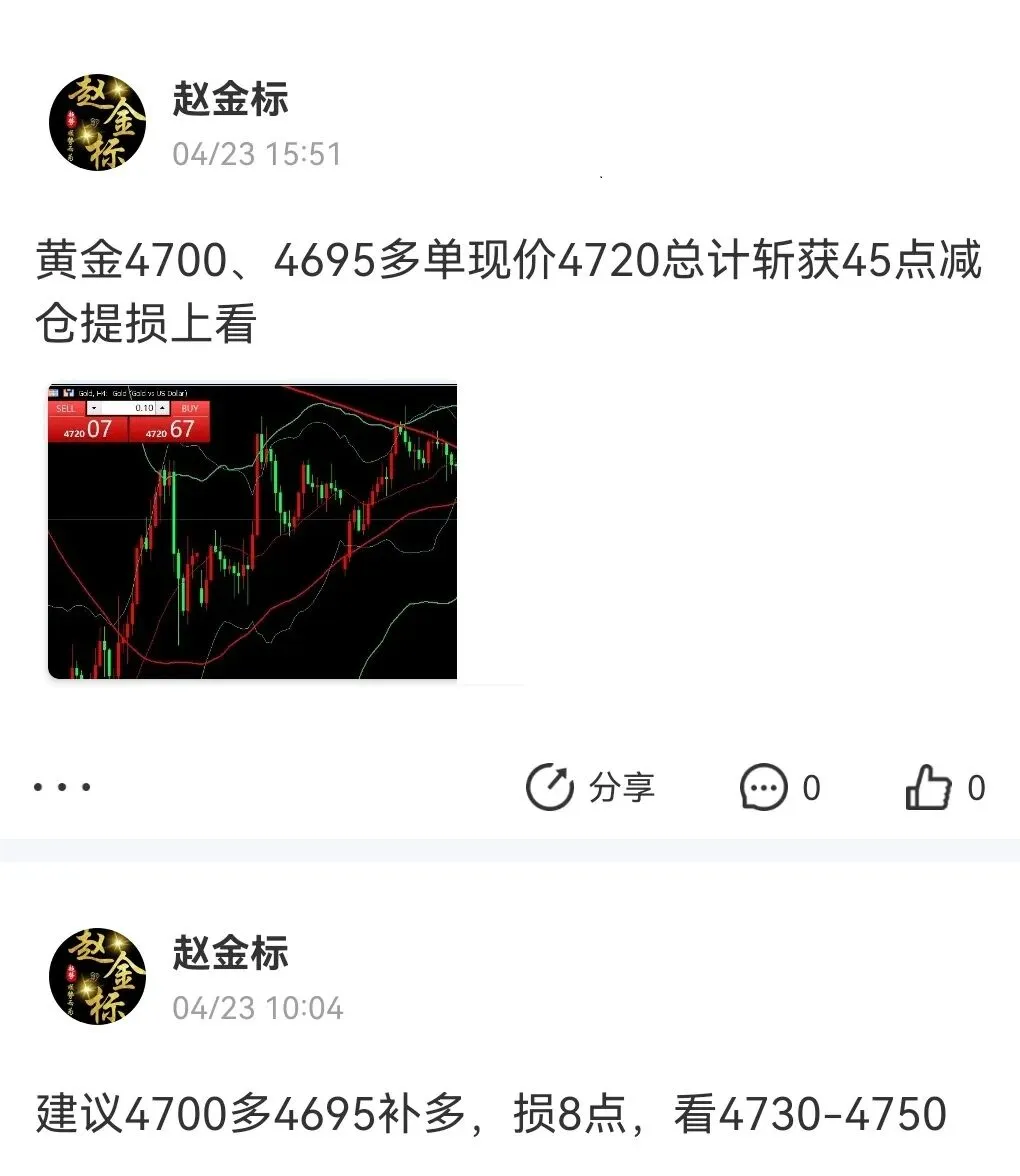 昨日操作回顾:回踩做多思路得到印证;黄金4700多单在4708获利8点出局;黄金4700、4695多单在4720总计获利45点出局;黄金4690、4685多单在4700获利减仓在4720总计获利65点出局;