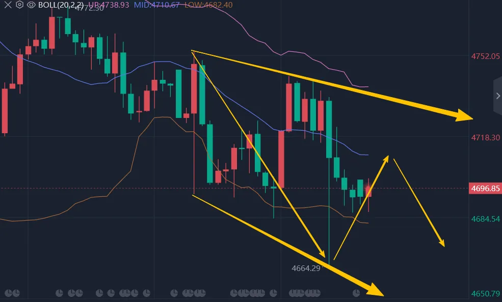下方4664核心支撑,不破延续反弹修复;上方先看4720—4753压力区间。操作暂时按区间震荡对待,支撑附近低吸为主,高位承压再考虑短空。