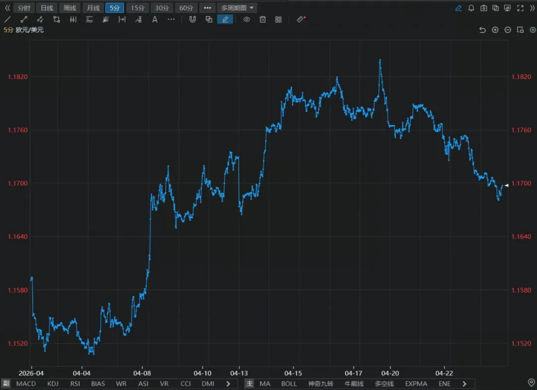 - 价格从1.1840下跌至1.1700附近,尚未企稳形成底部逆转形态