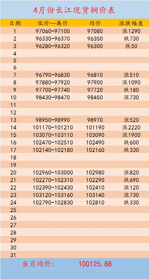>【铜价】4月24日长江现货行情