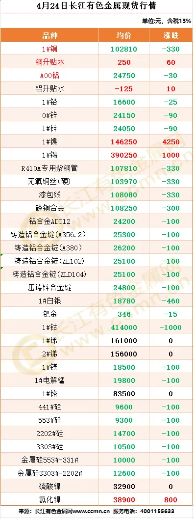 4月24日最新行情播报|镍锡强势爆发,基本金属普遍承压回调