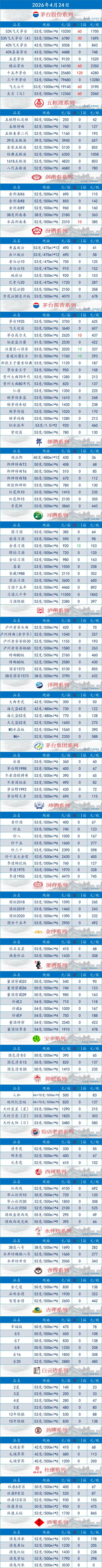 京日酒价:每日名酒行情(4 月 23 日)