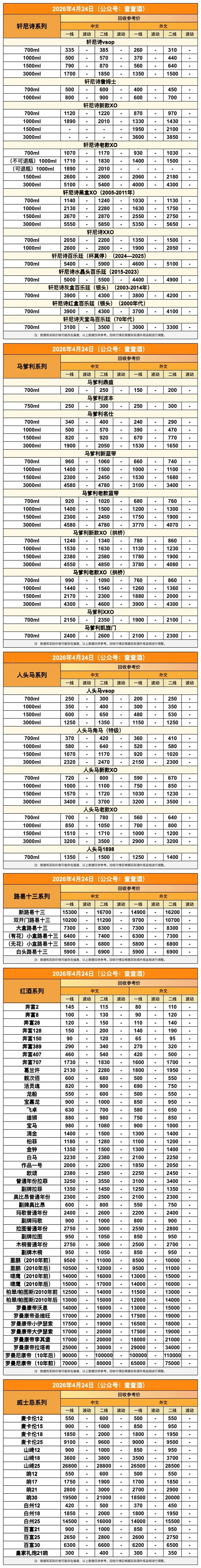 本报告/分析中提供的数据来源于网络公开信息及酒商社群,经过整理和分析后呈现。尽管我们尽力确保数据的准确性和完整性,但由于市场动态变化、数据采集方法的限制以及信息来源的多样性,所提供的数据可能存在偏差或误差。因此,本报告/分析中的数据仅供参考,不构成任何投资建议或决策依据。