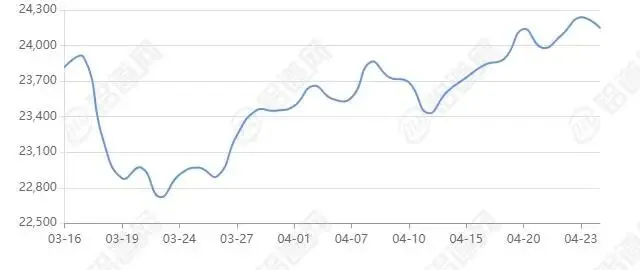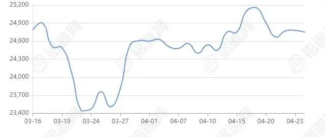 2026年04月24日长江有色金属现货交易行情 价24750涨跌-30,最低24730,最高24770,前三日均价24740,前五日均价24858。仅供参考,风险自担。