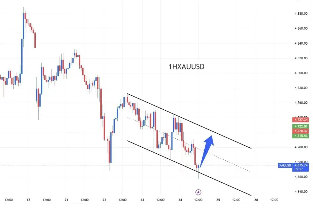 美盤時段黃金出現V型反彈,最高觸及4742,但未能突破前高4753,多頭動能不足。隨後在基本面壓力影響下,價格快速回落,再次測試4668附近支撐,日線最終收陰,短線結構明顯轉弱。