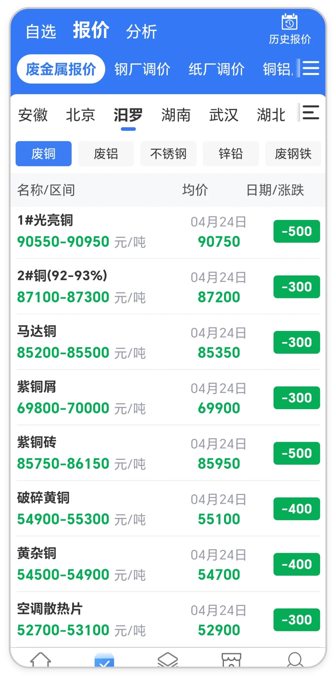 废铜变化不大!全国废铜最新价格行情(4月24日)