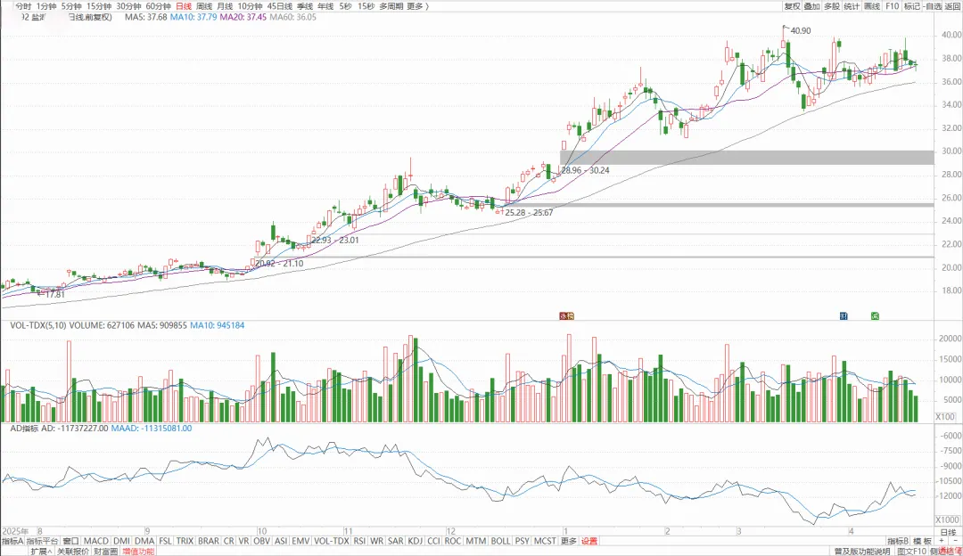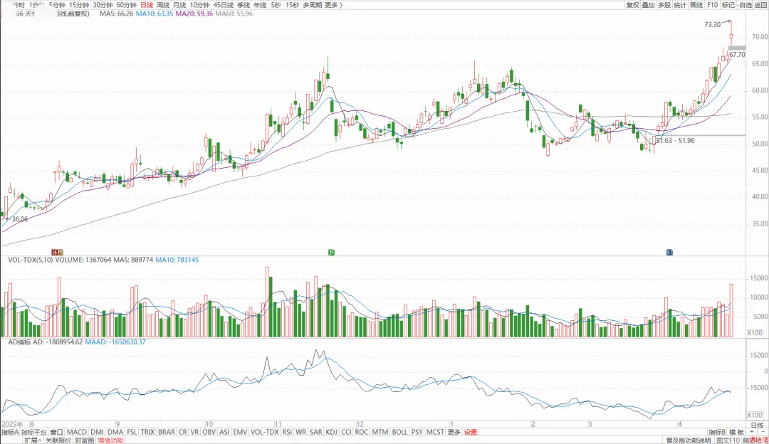 中游材料企业业绩稳步增长,机构重仓持股,走势相对均衡,适合中线波段操作,不用频繁盯盘。