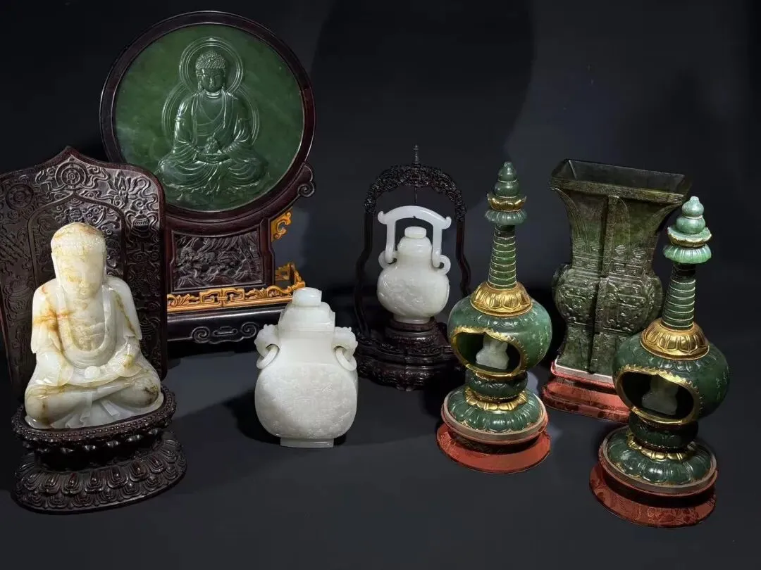 最后看这组玉器:佛像、瓶器、摆件都是“料好工精”的代表。玉器在古玩里一直是“硬通货中的硬通货”,现在市场冷清时收进来,等行情启动,这类藏品的涨幅往往是“跳着涨”的——可能上个月还是“小五价”,下个月就到“中五”了。