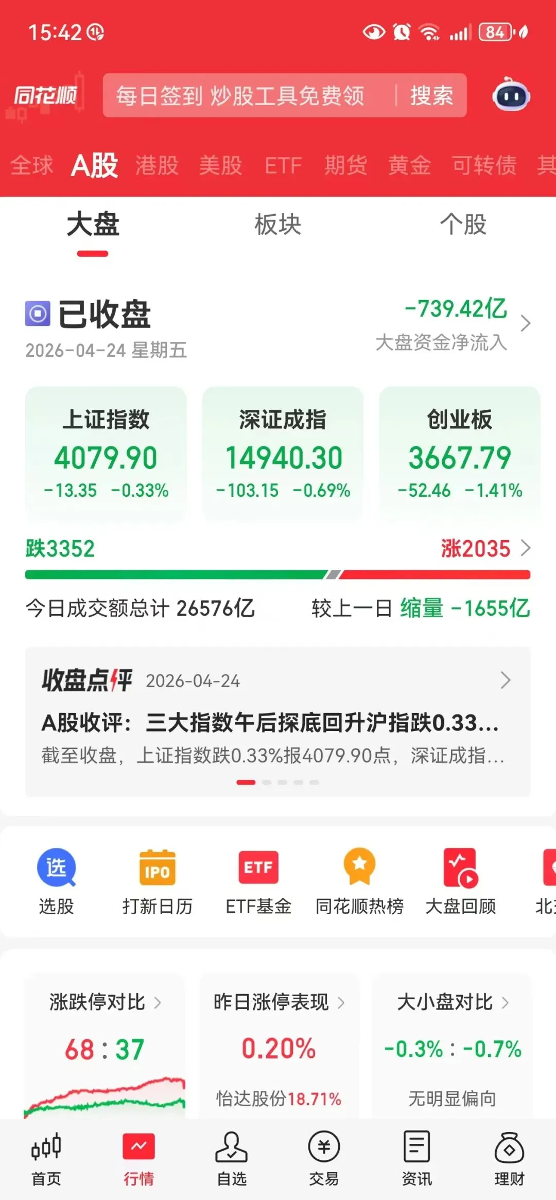 另外说说盘面:今天创业板小幅回落,大部分个股同步走弱。从走势形态能明显感觉到,市场情绪开始变得谨慎不安。成交量放大、指数却涨不动,加上个股普遍回调,种种信号都说明,市场短期有明显的调整需求。国际方面,伊朗局势基本落地消停了。但冲突平息之后,高油价带来的负面影响,才刚刚开始显现。