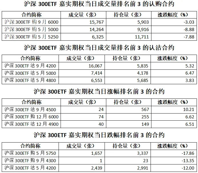 沪深300ETF嘉实期权总成交面额61.01亿元,减少11.38%,期现成交比为0.01,权利金成交额0.71亿元;期权总成交量120,995张,减少9.69%,其中认购期权成交量66,065张,认沽期权成交量54,930张,认沽认购成交比率为0.83(上一交易日认沽认购成交比率为0.66)。