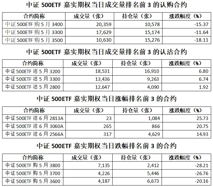 中证500ETF嘉实期权总成交面额55.40亿元,减少31.81%,期现成交比为0.01,权利金成交额1.04亿元;期权总成交量167,631张,减少29.36%,其中认购期权成交量92,715张,认沽期权成交量74,916张,认沽认购成交比率为0.81(上一交易日认沽认购成交比率为0.54)。