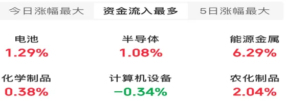 能源金属,盐湖提锂、农化制品等板块主要领涨;