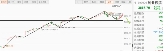 创业板指30分钟图/5分钟