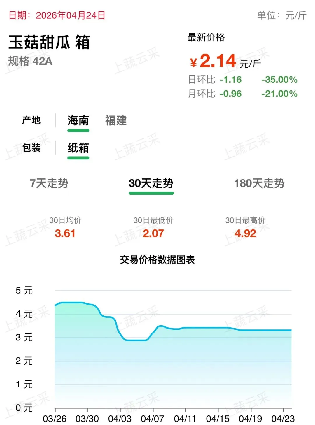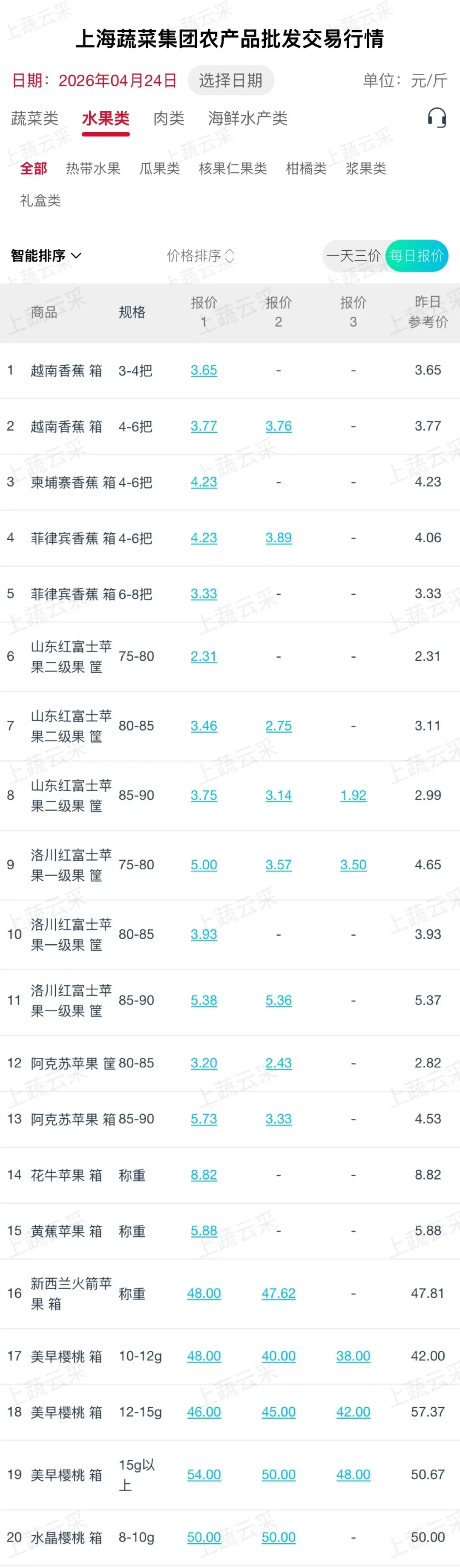 蔬菜、水果、肉、海鲜水产等更多品类交易行情