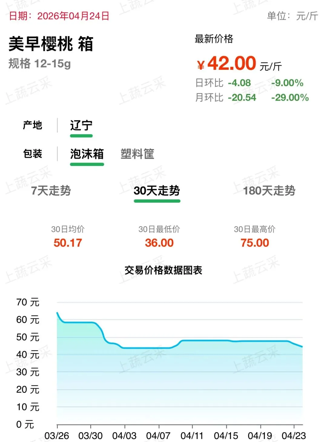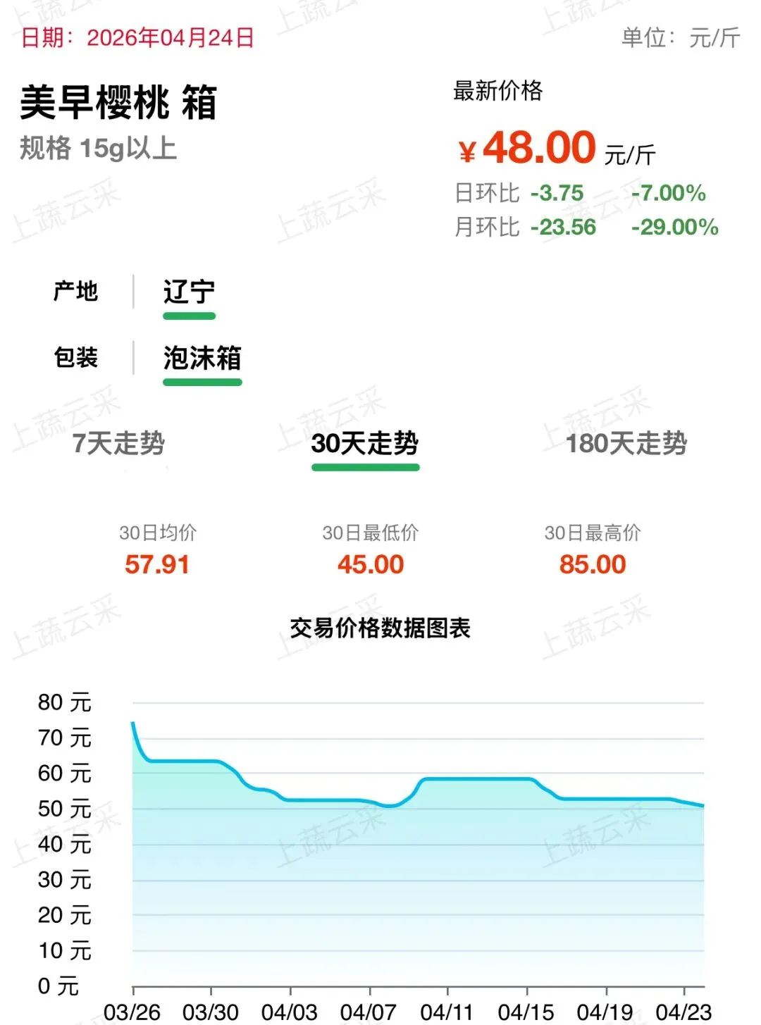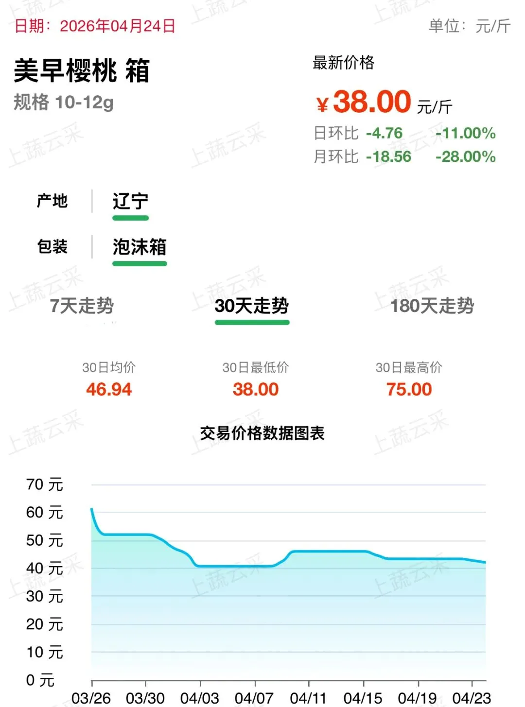 大连美早樱桃批发交易行情走势