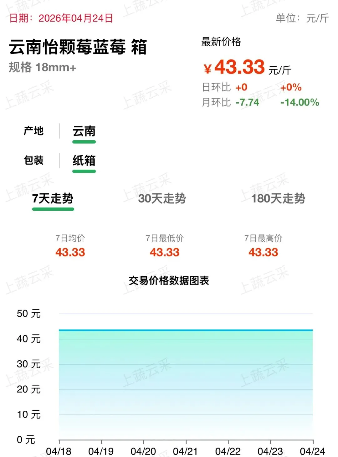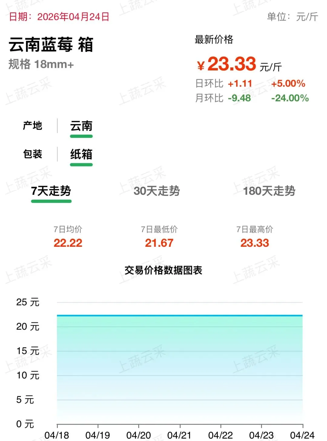 蓝莓批发交易行情走势