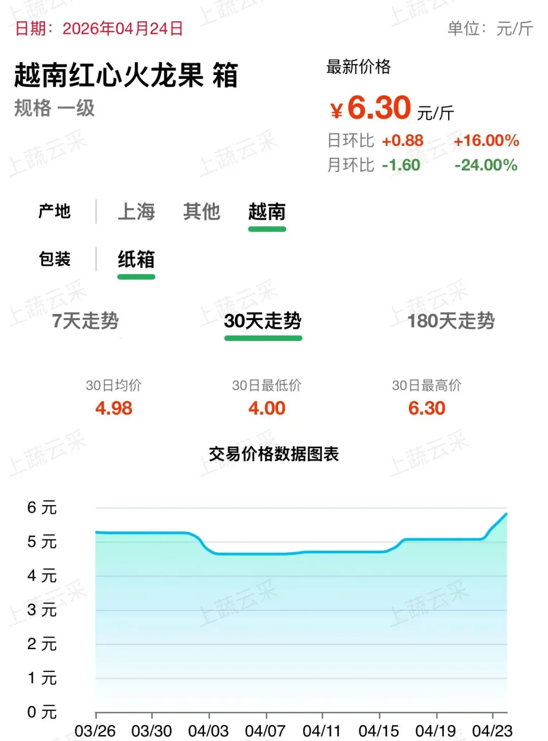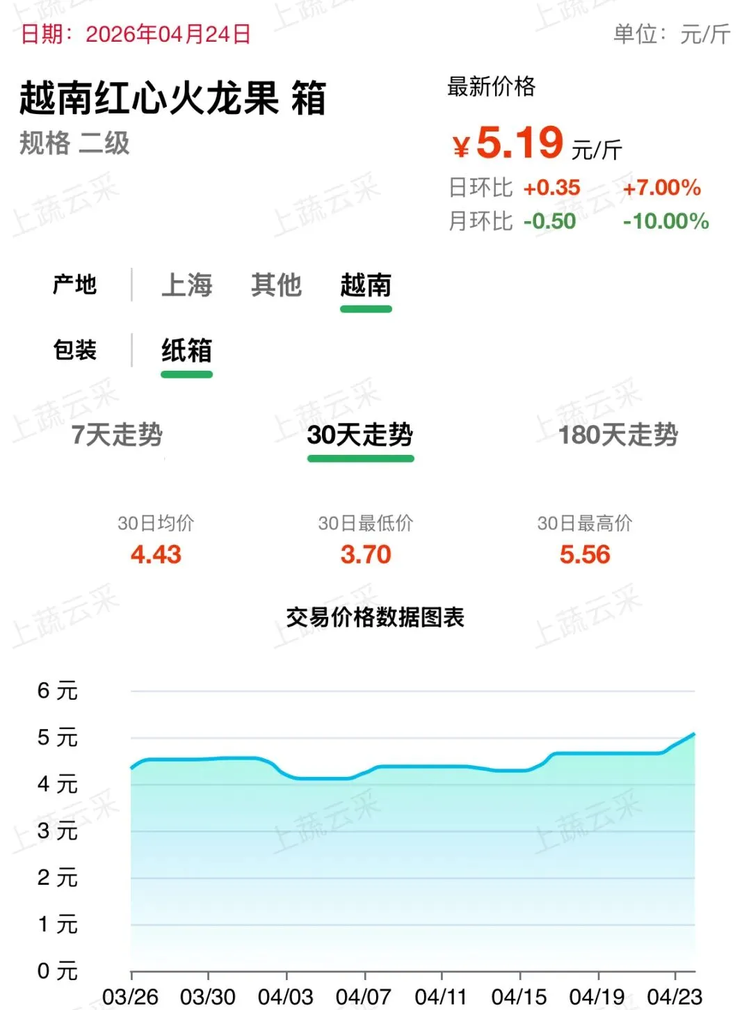 火龙果批发交易行情走势