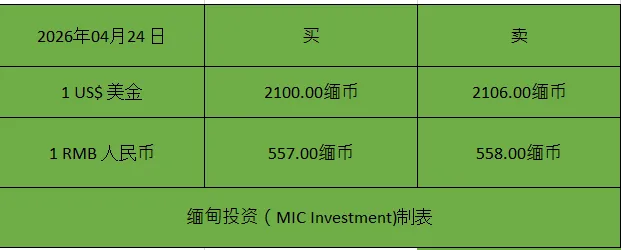>缅甸今日(24日)股市汇市行情
