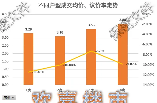 另外,从砍价幅度上看,1房、2房小户型的砍价幅度远远大于3房户型,作为卖房人或许只能用四字形容:痛心疾首,当初买的时候说好的先上车,花的是远高于3房、4房的单价,现在终于可以换房了,单价不如大户型就算了,为什么砍价幅度也要比大户型多出3-4个点?