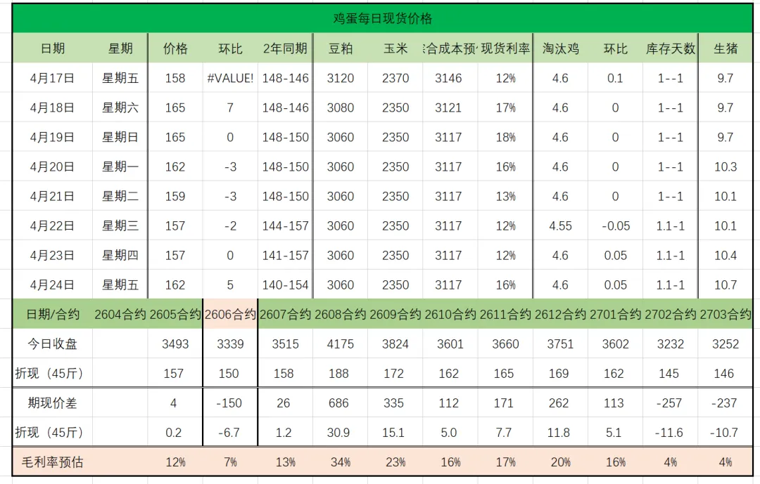 >鸡蛋期现货每日行情更新2026.4.24