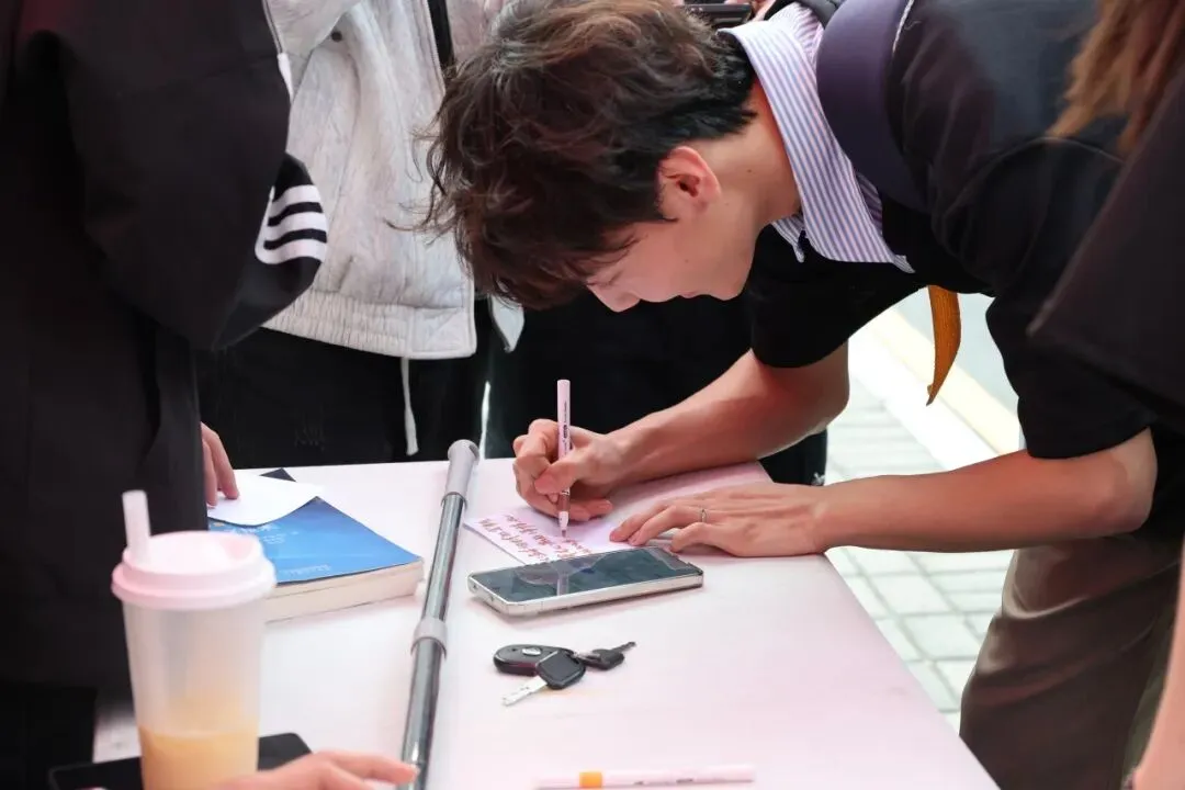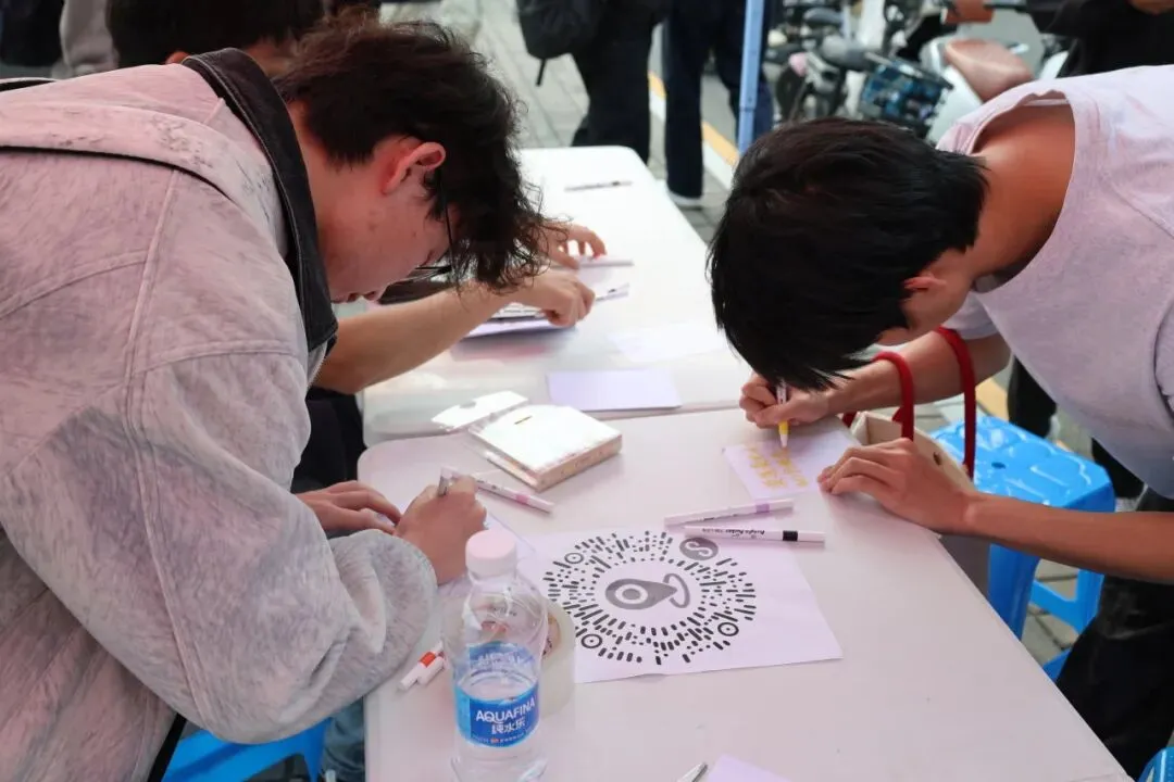 午后的理工楼前,阳光洒落,展架旁围满了驻足书写的身影。有人低头沉思,有人提笔微笑,有人写完轻轻挂起,转身留下一份温柔的期待。每一张展示出的书写纸,都是一次无声的告白。关于友情、爱情、亲情,或是对家国山河的热爱。