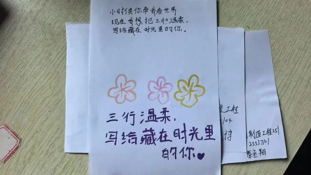 四月的风路过理工楼前,捎来了许多未说出口的话。由智能工程学院团委心理部主办的“以春为笺,三行寄意”三行情书活动,在4月20日—21日两天午后静静发生,又轻轻结束。有人提笔又停,有人写完转身一笑。那些挂在展架上的三行字,比春天本身更动人。