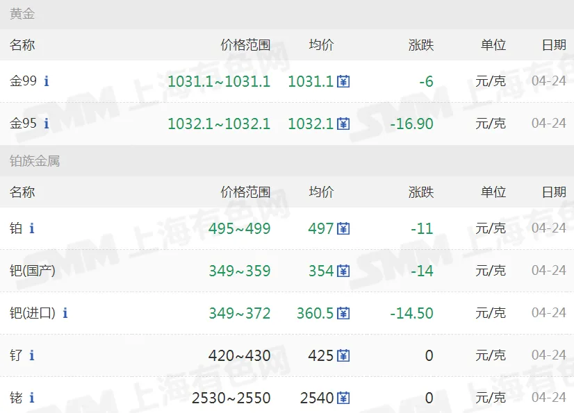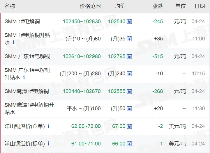 今天铜价实时查询!现货铜价格行情走势图今日回收多少钱一斤(4月24日)