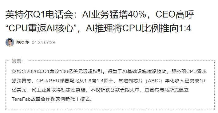 这,就是这两天CPU板块异动的核心原因。