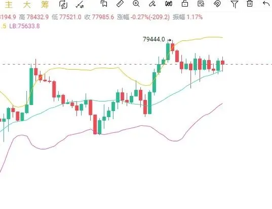 那么目前的话还是我说的那几个关键位置,上方78500就是哆头的突破口,这个位置破不了就看不到上方区间。下方77000关口包括77500这里,虽然有较强的承接力度,但哆头不给到有效进攻,77000一被破就还是顺势跌一波了。姨太高位反而在缓慢下移,一直在给回踩的机会,关键性支撑还是给到2280这里。