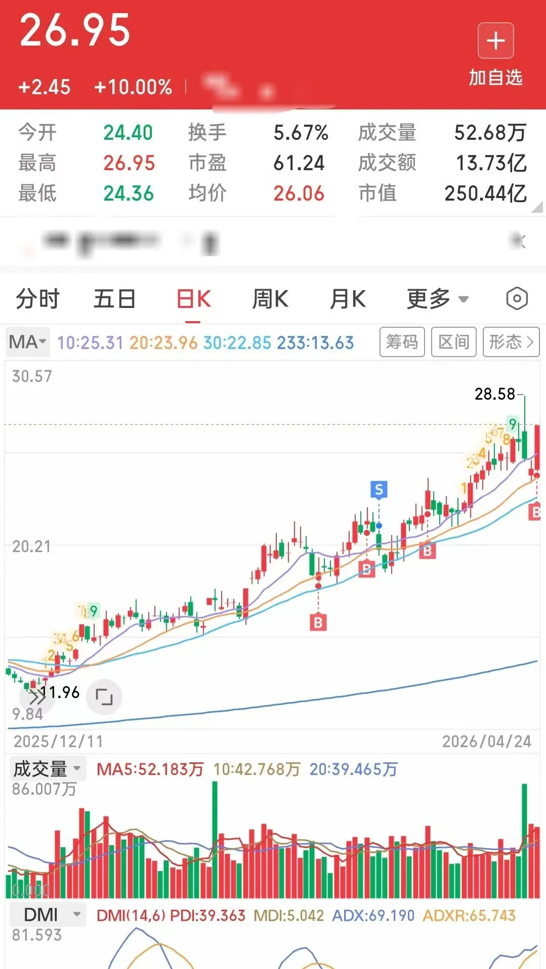 投资标的物在2026/4/22涨停的那一瞬间,我的持仓其实获利了40%+,后来当天炸板且收盘下跌-3%左右,于是我的该重仓股的盈利变成了27%左右,但我心里是知道机会即将到来了。