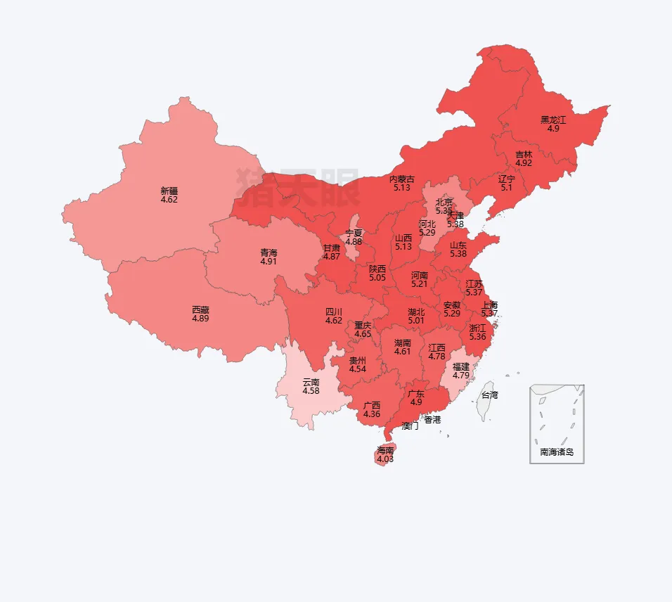 高价区域核心集中于华北、华东沿海及直辖市板块 均价区间集中在5.1-5.4元/斤;低价区域则以华南、西南及西北部分产区为主 均价多在4.0-5.0元/斤