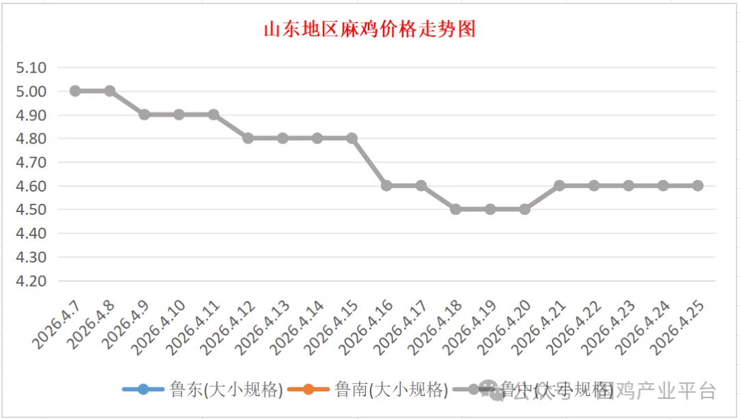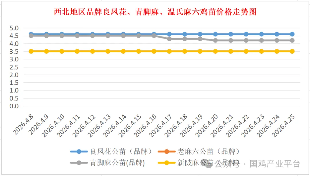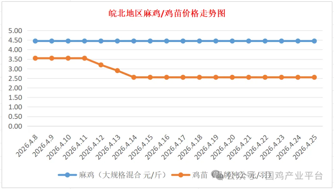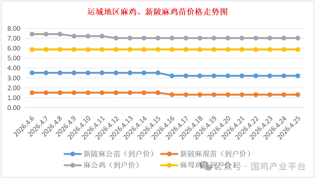 品牌新陂麻:价格稳定,到户价公苗4.50元/羽,稳。