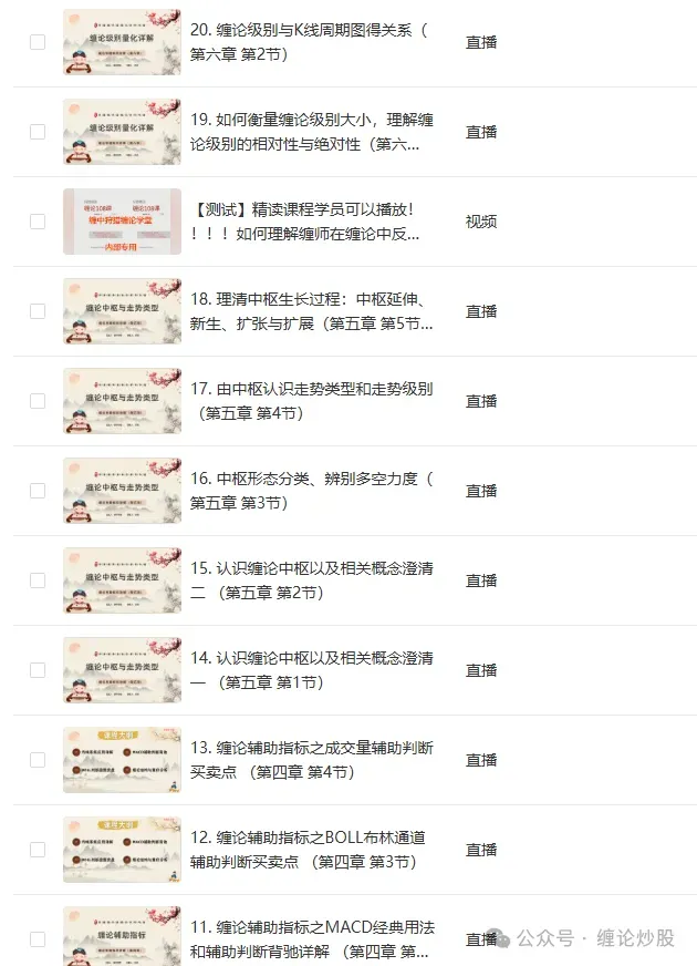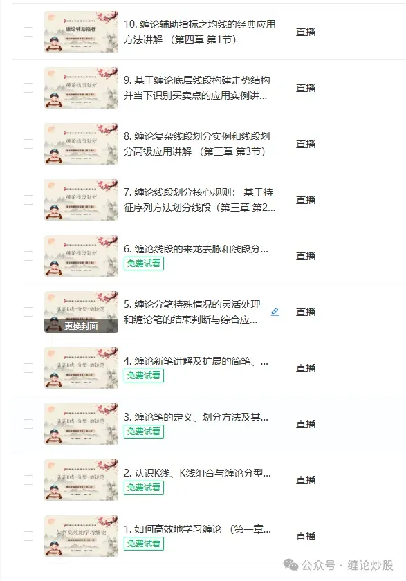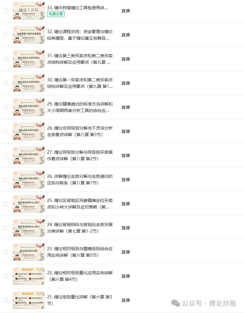 【第一期缠论精讲课程内容列表】