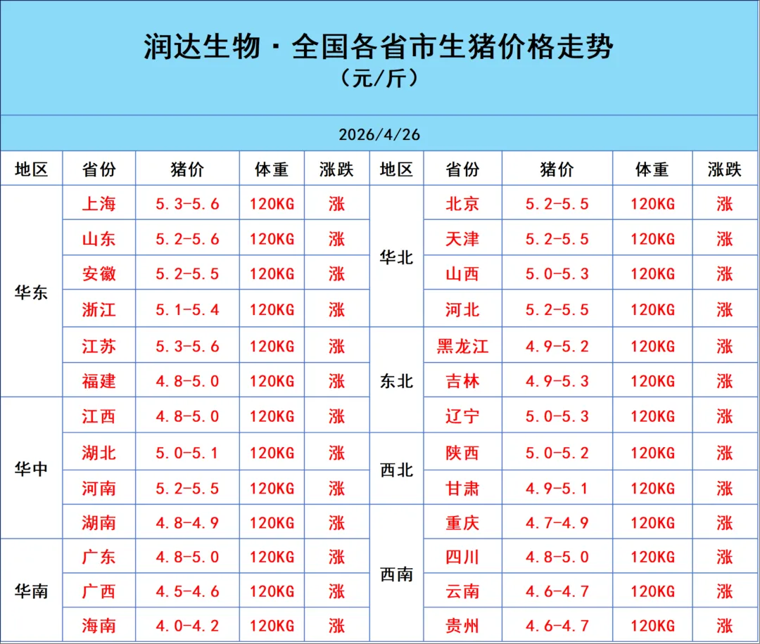 >2026年4月26日明日猪价行情:火力全开!涨涨涨!
