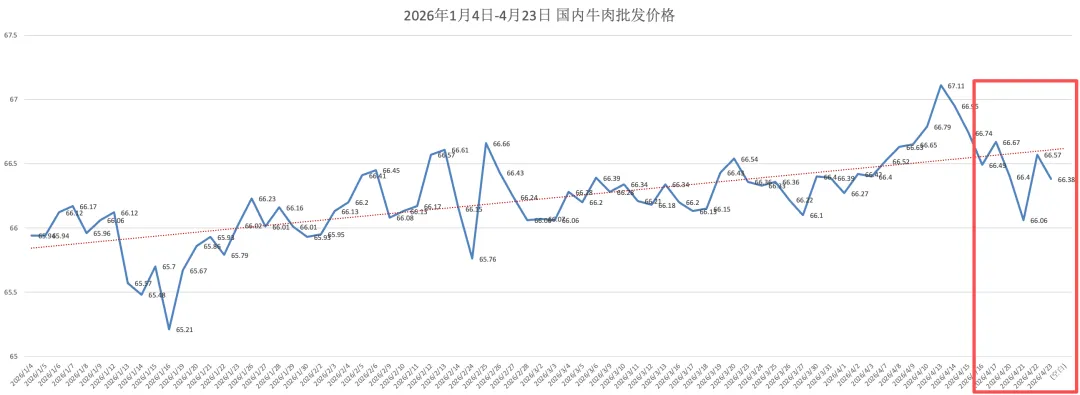 国内牛肉批发价格止跌,羊肉批发价格出现明显持续下滑。