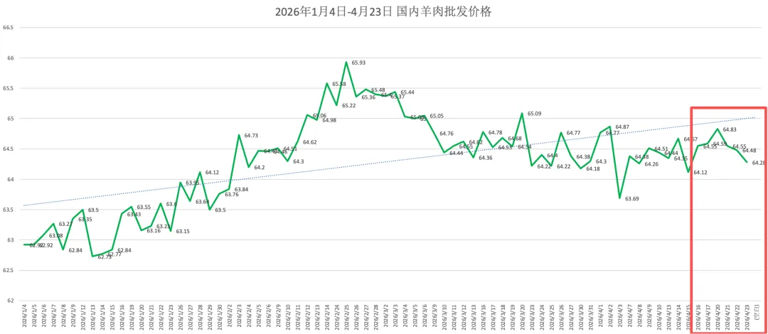 羊肉也先升后跌,这周四比上周四跌了0.3元左右,这周连续4天下跌,1个月以内首次出现这种情况。再观察几天