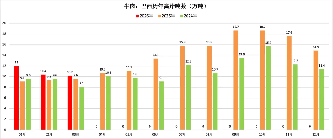 【6】牛肉 巴西每周/月出口:每周二或月初公布