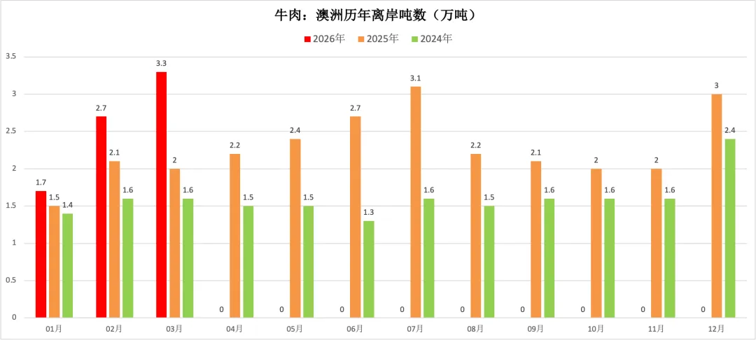 截止4月20日,澳洲出口到中国约1.8万吨,预计4月出口2.9万吨左右,预计比3月3.3万吨减少15%。但还是比2025年4月2.2万吨会多32%。