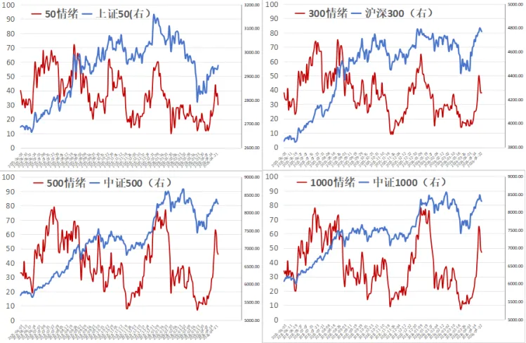 情绪指数有下降。不过,我在社群文章里面跟大家说过,行情顶部的观察,需要借助“顶部风险”这个指标。