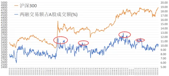 还有一个趋势数据,大家可以参考下“两融成交占比”。