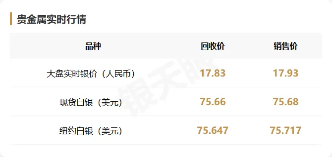 国际市场中 现货白银报价为75.66/75.68美元/盎司 纽约白银报价为75.647/75.717美元/盎司 两者价差仅约0.07美元/盎司 属于正常的交易滑点范围 反映出国际白银市场流动性充足、定价效率较高