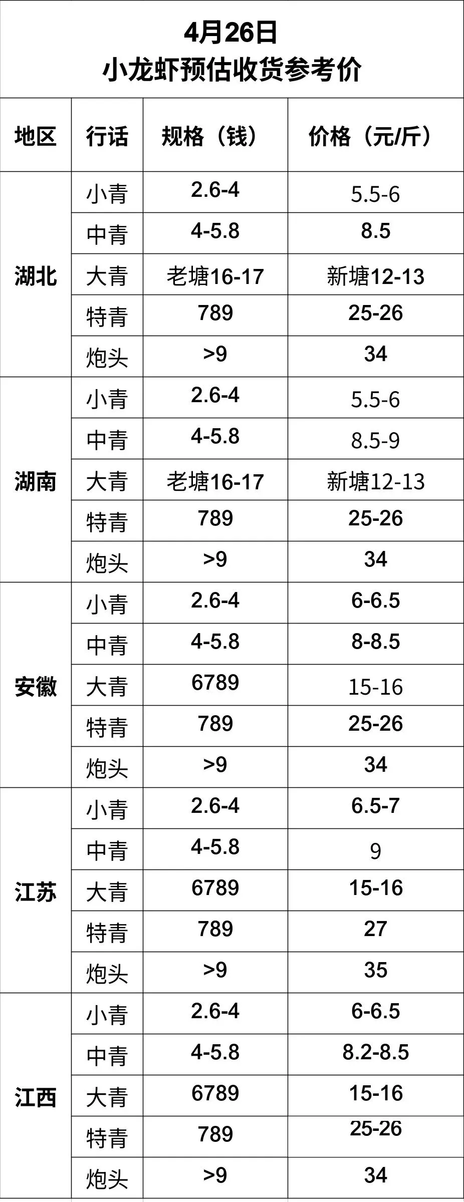 涨价犹如昙花一现,中小青规格全靠冷库支撑,前两天受虾价低迷,养户没有取虾,导致市场上没什么货,才有了25日久违的上涨,没想到仅仅一天,又有一点下滑的趋势。5月的行情还能否让人期待呢?以下是最新的行情走势,仅供参考。 如需进群,视频下方二维码。随时关注行情走势。
